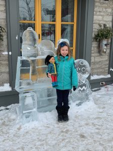 Then, Uncle Glen and Aunt Kim came to Toronto and took Kate on the train to Quebec City for more birthday fun.  It was VERY cold, but they had a great adventure together exploring the city, and watching Macy and her team play hockey.  This was the same team that had played the Meagan’s Walk fundraiser the year before, so everyone had Nora in their thoughts.