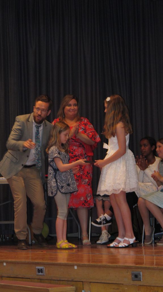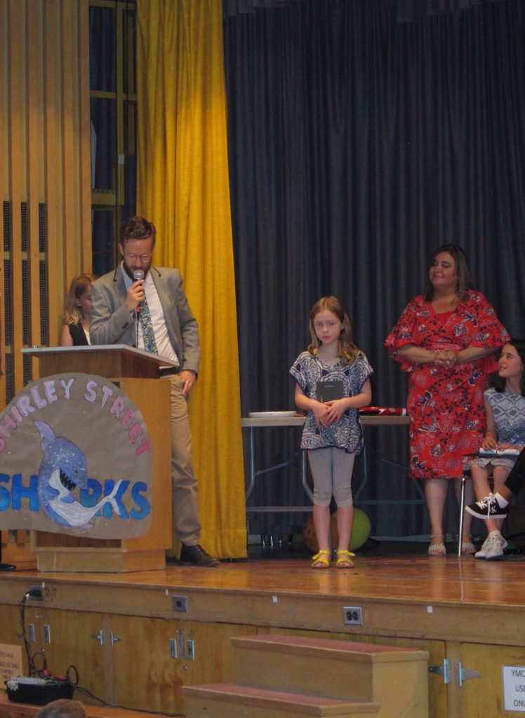 Today was the Grade 6 graduation ceremony at Shirley St. School. Kate bravely presented the Nora Parker Student Excellence Award to this year’s recipient, Abby Brown.